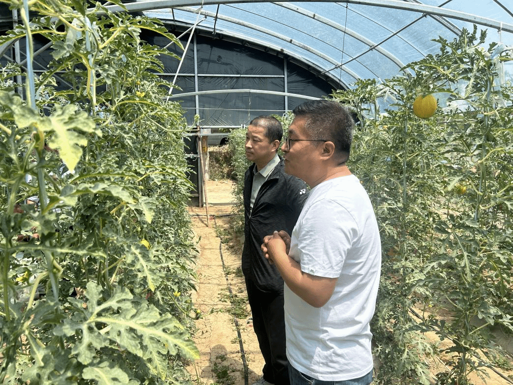随后,队伍前往蒲城食品产业园,走进孙镇王台村西瓜大棚。大棚内,翠绿色的西瓜藤蔓沿着支架攀爬生长一个个圆润饱满的西瓜悬挂在藤蔓之下,墨绿的表皮泛着自然的光泽。