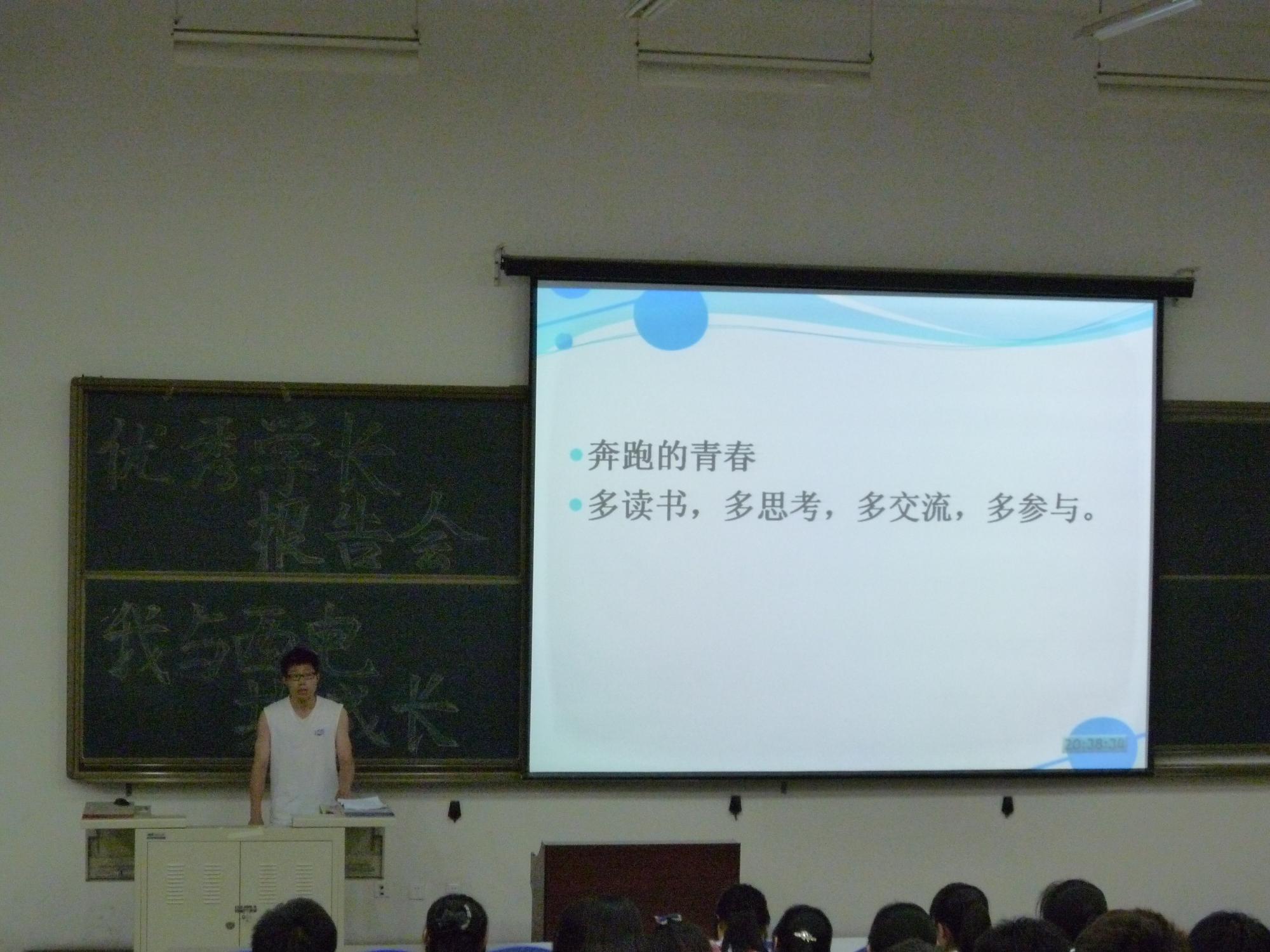 在报告会中,杨金龙学长通过“解放的大一,忙碌的大二,选择的大三,疯狂的大四”等四个板块,向大家掠影式的阐述了老员工活。而梁浩学姐则是在实习方面向大家传递了一些心得,让大家更容易获得实习机会。学习成绩优异的张榕学姐则告诉了我们她的学习精神和心态;当然,保研成功的她,也从“保内”和“保外”两个方面介绍了保研之路。陈潜学长以“奔跑的青春”为题,通过“多读书”,“多思考”,“多交流”,“多参与”这四个方面告诉了大家如何在大学里给自己充电。