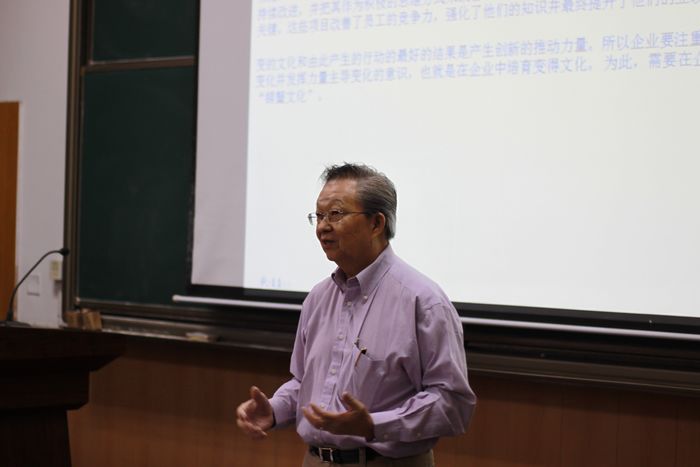 潘先生从企业终极目标与管理要素、企业愿景使命及价值观、企业管理战略、管理要素体系流程和变化管理等五个方面向同学们讲述一个企业如何走向成功,作为企业管理人,如何使企业永葆活力,勇攀高峰。课程期间,潘先生引用中国古典《孙子兵法》和《易经》,引经据典,并结合现代企业管理案例,向同学们生动的讲述课程内容,同学们时而认真听讲,时而小组讨论,课堂气氛异常活跃。