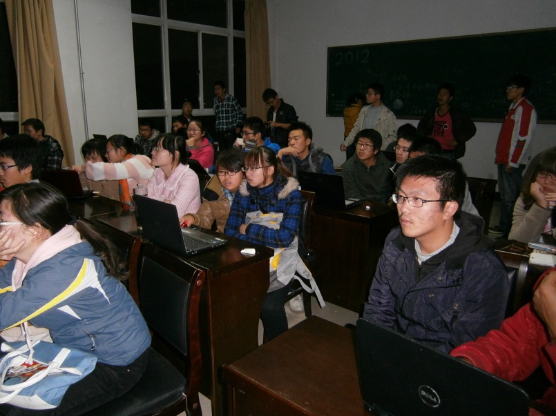 王晓伟同学目前在MSTC传媒推广部和POD影音工作室工作,具有比较娴熟的视频制作技术。他以幽默诙谐的风格为我们讲解了如何制作视频。首先他讲述了视频制作的步骤,所需的软件及特点。后来他重点讲述了要做一个好的视频,要有完善的构思和准备,要有思想,在内容和形式上创新,能够调动观众的情绪。最后他主要以会声会影为例,现场演示视频制作并进行了具体指导,大家认真听讲并自己动手学习会声会影软件的使用。