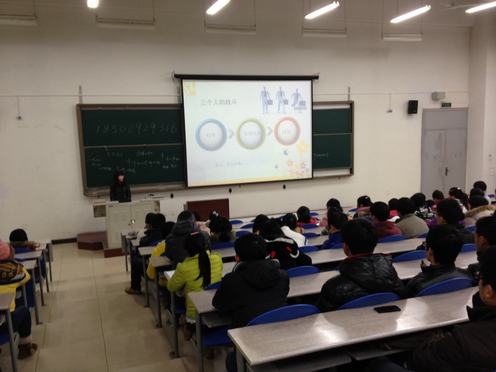 2012年全国数学建模大赛陕西赛区一等奖获得者熊烨明同学向大一的学弟学妹们介绍了数模竞赛的内容及意义,并对竞赛流程做出了详尽的介绍,她尤其强调团队之间的配合以及个人坚持不懈努力的重要性,并告诉学弟学妹们过程比结果更重要,坚持才能看到胜利。随后,2012年全校“十佳老员工”候选人李欣同学从新生学习生活中所面临的各种问题出发,将大一生活中的问题分为:心态、学习、竞赛、实践四类。每一类都将自己的经验与大家分享交流,希望为学弟学妹们答疑解惑。接着,2012年国家奖学金获得者06105班班长杨楠堃同学用自己大学的成长经历告诉学弟学妹们工作与学习并不冲突,有效的目标,时间管理可以帮助他们成为优秀的西电学子,他提出三点:1、不拖延。2、有计划。3、时刻提醒自己。台下的大一新生们认真聆听学长报告并记录学长的经验之谈。最后,作为经管院第一位获得全国老员工数学建模大赛全国一等奖的刘巧莉同学,她着重就数模竞赛中的技巧,心态及汇报等方面作出了介绍,同时鼓励同学们积极参与数学建模大赛。