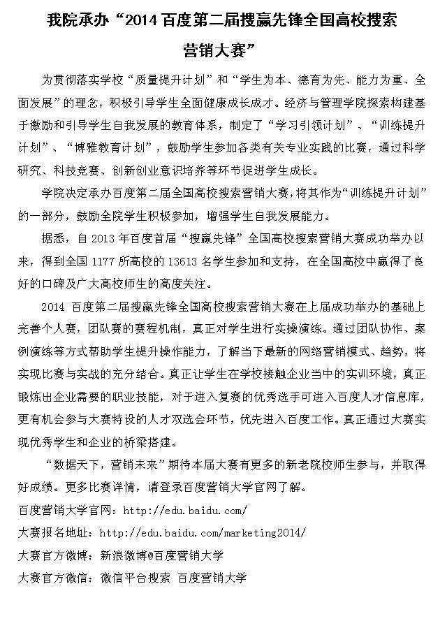公司承办“2014百度第二届搜赢先锋全国高校搜索