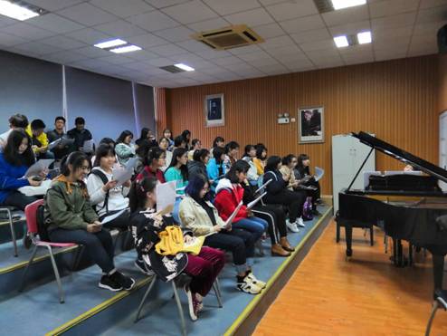 随后,指导老师李阿云与合唱团的全体同学进行了亲切交流,并对本次的选曲和排练形式进行了简要介绍。她指出,本次所选歌曲较往年来说难度较大,更加需要同学们积极配合,用更多的热情和耐心参与到排练中来,期待与大家共同努力,能够在舞台上将最好的一面呈现给全校师生。此后,在相关负责同学的协助下,合唱团完成了男低音,女中音,女高音的人员分组,并对合唱曲目进行了熟悉和初步编排。