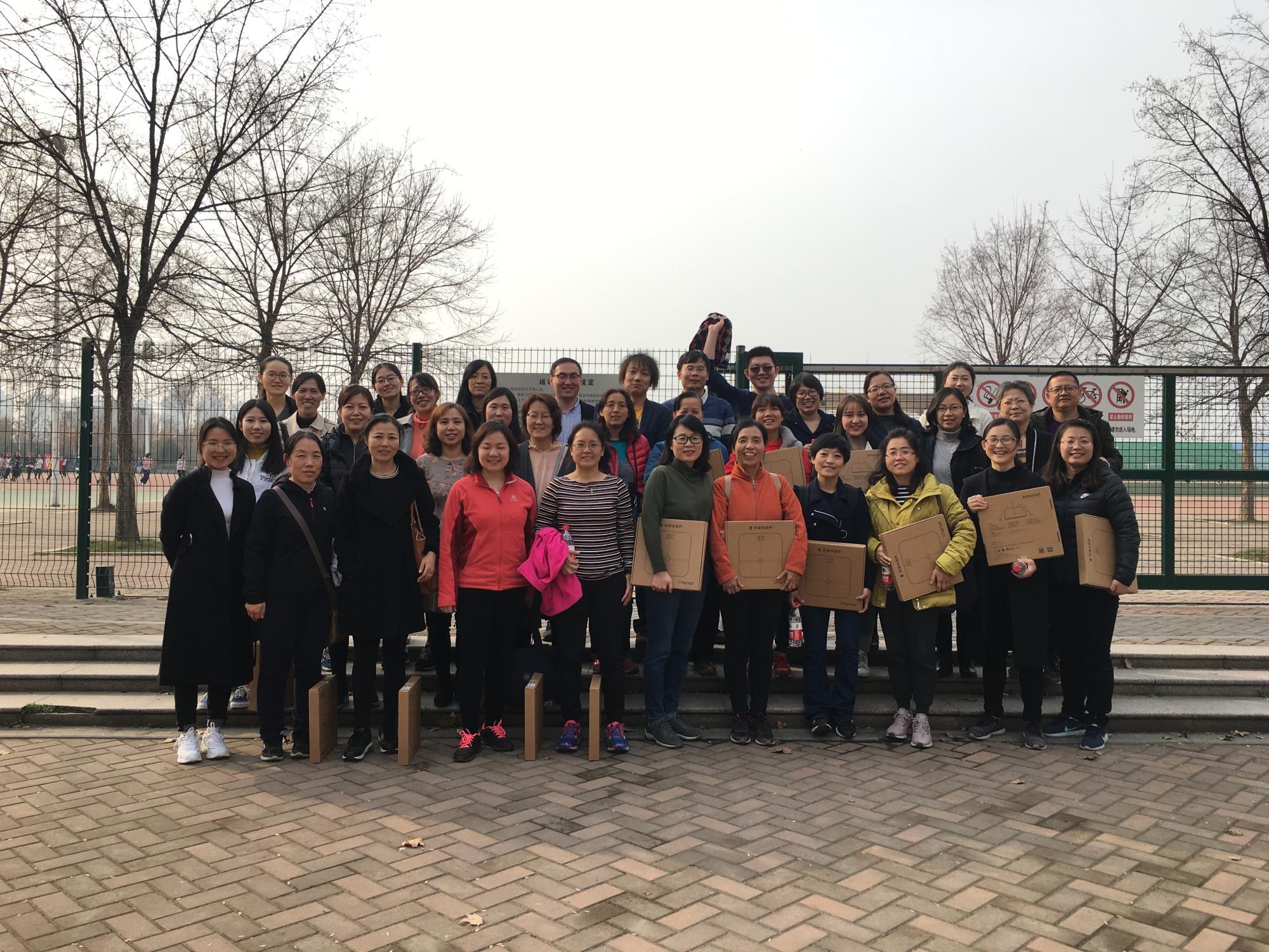仔细一看,参加比赛的不是员工,而是英国365集团公司的教师们。组织这次比赛,是为公司女教师庆祝马上要到来的3.8妇女节,让平常在一线工作的老师们放松一下,都能展现自己的魅力。别看老师们平时上课的时候端庄严谨,跳大绳的时候课时活力满满呢。来参赛的由公司机关和各个系的多名老师,大家自行分为几个小组,规则是每个小组至少4人上场比赛,在三分钟内跳的次数最多的小组获胜。