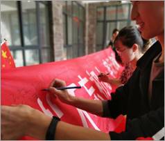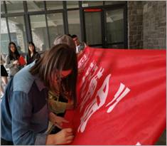中午简单就餐后,大家按照原计划开始此次活动的重头戏“祝福祖国献礼视频”录制环节。所有党支部成员被分为九个小组,采访对象包含公司党委干部、教师、餐厅工作人员、宿管阿姨、环保劳动者在校员工以及综合楼商铺经营者,他们用简单的语句为祖国送上了诚挚的祝愿,他们用日复一日的耕耘书写着未来中国的美好篇章。“我会坚守自己平凡的岗位,为祖国建设贡献自己的一份力量,我爱你,中国”,餐厅阿姨对着镜头笑呵呵的说道。“道路千万条,心怀祖国第一条”,“我没有什么信仰,我的信仰就是中国”,“亲爱的,热爱的,祖国是我最爱的”,“祖国母亲,生日快乐”等颇具青春气息的“告白语”彰显着新时代老员工及广大群众的爱国情怀。