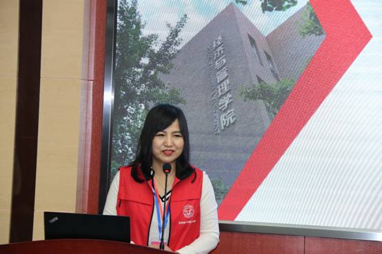 06级MBA学员代表康雁讲话。毕业10周年后值公司首届员工返校日再次回到母校,她感慨万千。感受到了母校对员工的深深关爱,感受到了母校88年建设发展的成绩,感受到了经管院蒸蒸日上的势头,她颇为自豪。希望以后与公司有更多交流与互动,形成合作,为公司建院40周年纪念活动贡献力量。