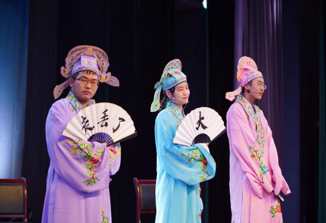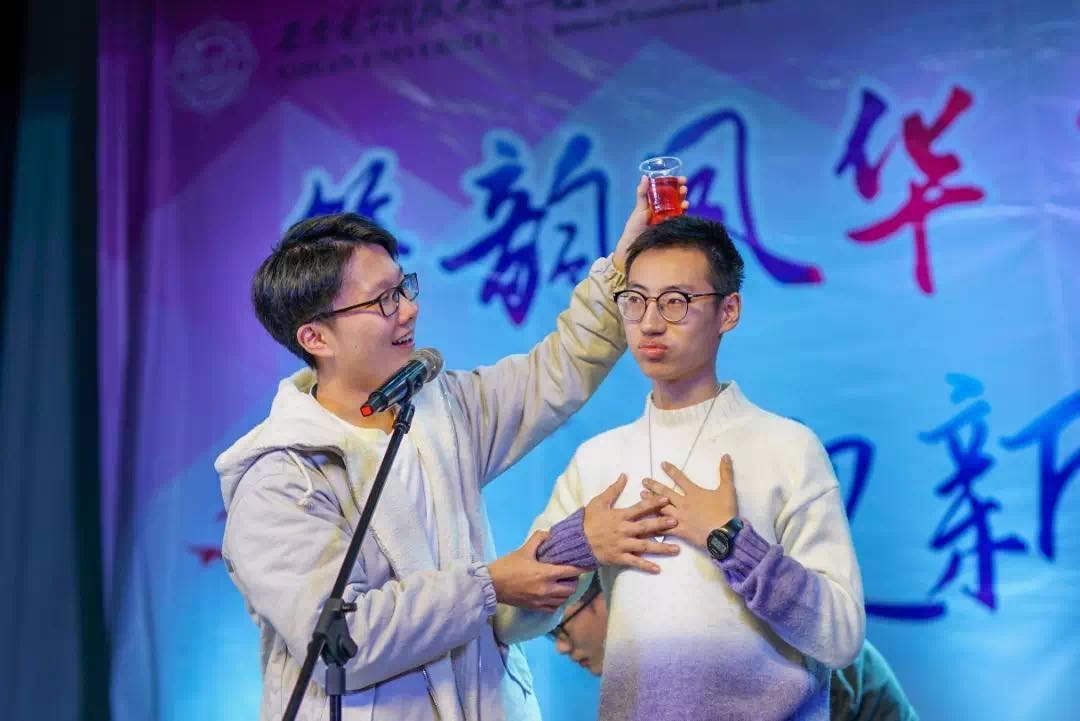 精彩纷呈的节目随之上演。在大家热情的欢呼声中,2019级新生辅导员安翔老师登台献唱,为大家带来了一首李健的《异乡人》。2019级本科各班班委带来的节目《你的杯笔》将penbeat与杯子舞完美结合,令在场同学眼前一亮,一次次敲打与音乐的融合,碰触的是内心,一盏盏杯中的亮光,点亮的是远方;《歌曲串烧》激励大家心怀最初梦想不断奔跑,创造属于自己的美好未来;魔术《消失的水》精妙绝伦,诡谲复杂的技巧幽默风趣的语言引得观众连连叫好;吉他弹唱《小半这一生关于你的风景》在低吟浅唱琴弦交错中将少年心事娓娓道来;朗诵《以梦为马》在9位研究生掷地有声的演绎中将对梦想的不懈追求和披荆斩棘的决心展现的淋漓尽致;舞蹈《芳华》和韩风舞蹈《芒种》用截然不同的两种风格展示了青春活力;歌曲《手心的蔷薇》表演者高超的歌唱技巧令观众仿佛置身于童话世界;小品《四大才子招亲记》惊艳的扮相,绝妙的台词,演员们富有张力的表演令人捧腹连连,叫好声不断;配音秀《声临其境》用声音演绎情感,无论是王者荣耀的千变万化还是亮剑的催人泪下,配音者的变化多端惟妙惟肖的音色赋予了每个角色生动的灵魂。