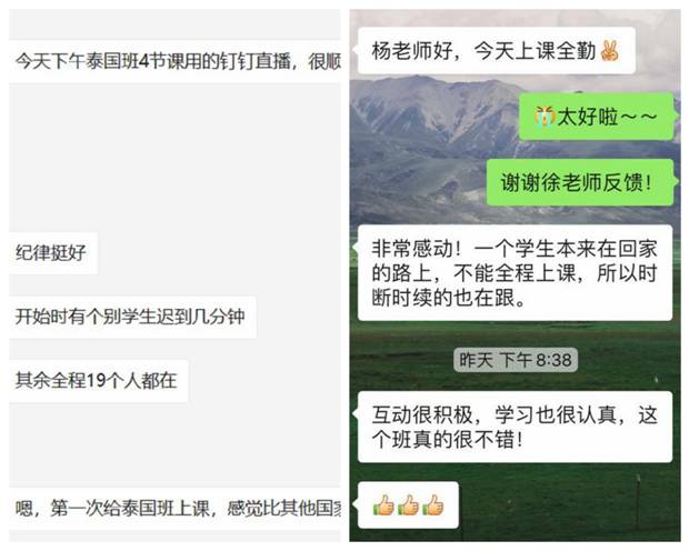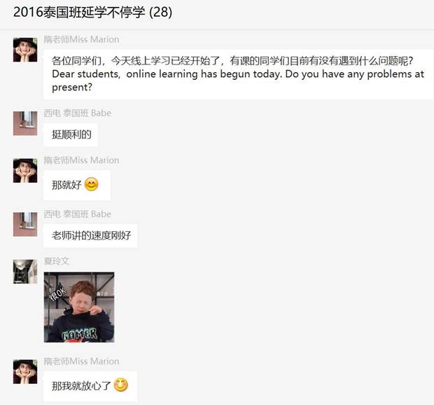 “原本对线上教学的实用性、有效性等都有着担忧,但看到各教务老师不断协调课程、督促员工、听取反馈,而且身在国外的员工们也都积极主动克服困难上课,加上硬件设施也相当给力,反而对线上教学更有信心了!”全英文授课班的教师如是说道。