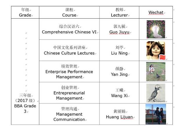 BBA三年级教学班各任课教师分享课程信息大群