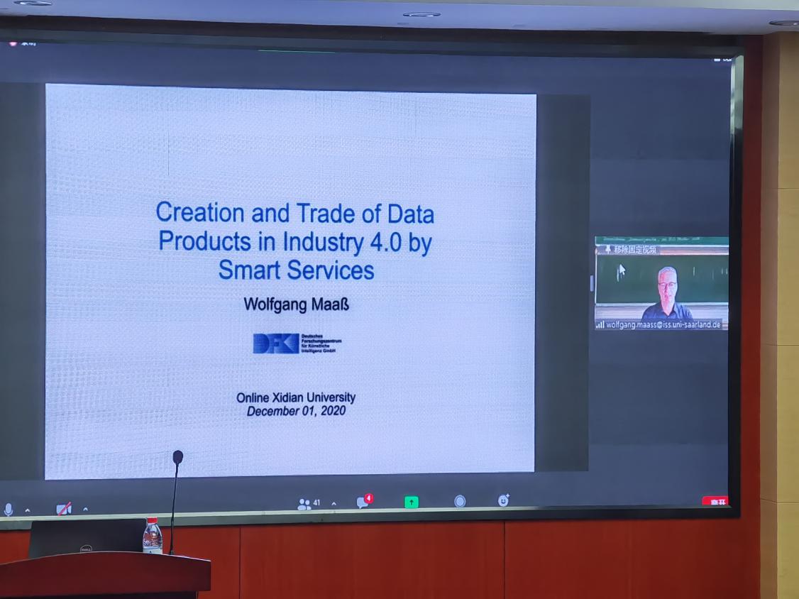 (通讯人:刘婧阳、罗鸣、马元凯)12月1日晚,任职于德国萨尔兰大学的Wolfgang MaaB教授,通过视频会议做了题为“Creation and Trade of Data ProductsinIndustry 4.0 by Smart Services(数据产品的创建和交易智能服务在工业4.0中的应用)”的学术报告,线上线下150余名西电师生参与报告讨论,会议在西电南校区信远楼324报告厅召开,由经管院杜荣教授主持。