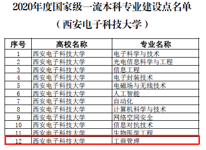 (通讯员:马露泽 马元凯)近日,教育部发布《教育部办公厅关于公布2020年度国家级和省级一流本科专业建设点名单的通知》,西电经管院工商管理专业入选2020年度国家级一流本科专业建设点,金融学与工业工程专业入选2020年度省级一流本科专业建设点。截止目前,西电经管院有两个国家级、两个省级一流本科专业建设点,国家级一流本科专业建设点为信息管理与信息系统、工商管理专业。省级一流本科专业建设点为金融学、工业工程专业。