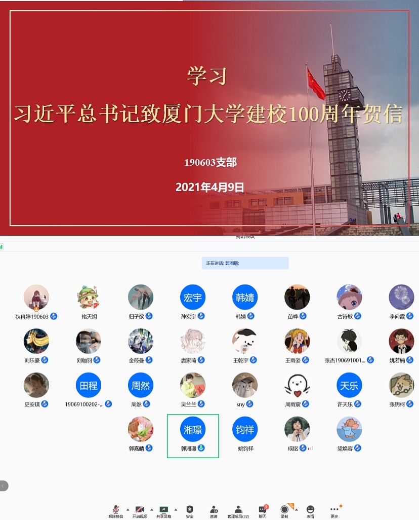 西电新闻网讯(通讯员陈圆)4月6日,习近平总书记向厦门大学建校100周年致贺信。经济与管理公司党委积极响应,组织党员干部师生学习习近平总书记贺信精神。