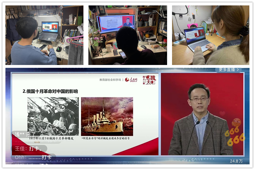 第一堂“党史”大课由北京师范大学赵朝峰、武汉大学卢勇、南京航空航天大学何畏等3位老师开讲,分别以“马克思主义与中国共产党的百年辉煌”、“中国共产党与中华民族的伟大复兴”、“中国共产党革命精神形成与传承的百年历程”为题,从不同的视角清晰地梳理了百年党史发展历程的脉络,带来了一场生动且震撼的精神盛宴。在听完这一个多小时的思政大课后,同学们感觉收获颇丰。