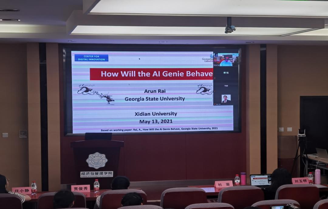 (通讯人:刘婧阳)2021年5月13日上午,现任职于美国佐治亚州立大学罗宾逊商公司的Arun Rai教授,通过视频会议做了题为“How Will the Al Genie Behave”的学术报告,线上线下约100余名西电师生参与报告讨论,会议由英国365集团公司杜荣教授主持召开。