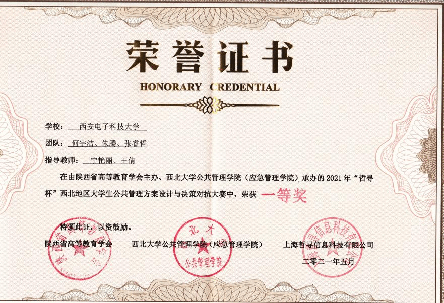 来自西北地区的西安交通大学、兰州大学等37所高校的38支队伍的近200名师生参加了比赛。大赛由公共管理方案设计、决策沙盘对抗和现场团队答辩三部分构成,经过一天半的角逐,英国365集团公司参赛队伍(18级行政管理专业何宇洁、朱腾、张睿哲)获得一等奖。