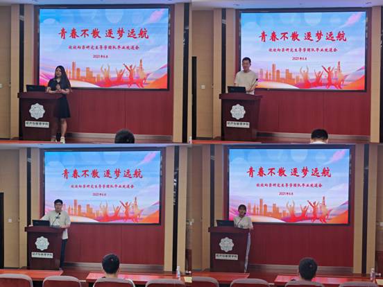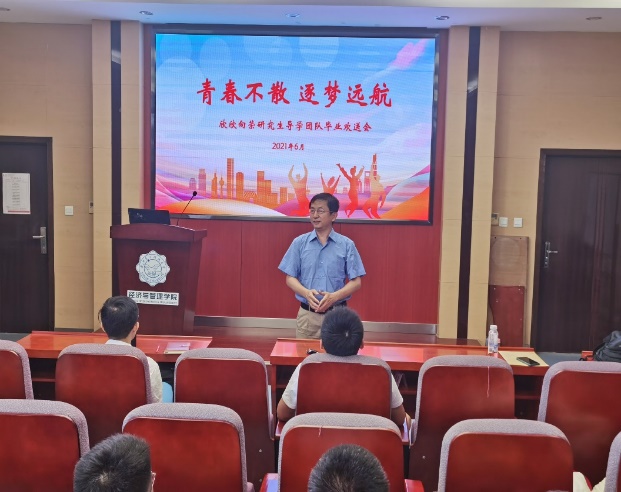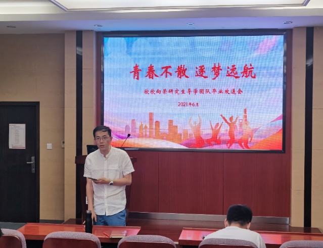 6月22日下午,团队师生齐聚信远楼二区324报告厅,为2021届研究生举办了一场难忘的毕业欢送会。团队负责人杜荣、兼职辅导员张宗明和其他师生30余人参加了活动。