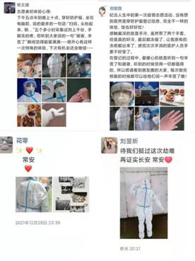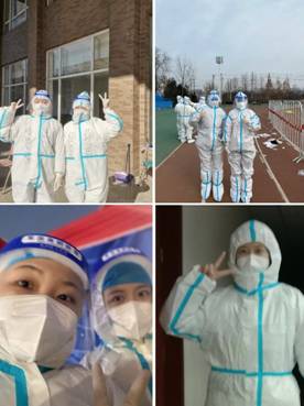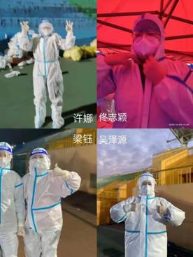 他们或化身“大白”,或担当食堂秩序维护者,在水果店帮忙打包……“在穿上防护服的那一刻有荣光,也有小心翼翼。长达五个小时的站位、手脚冰冷的毫无知觉、护目镜一次又一次被蒸汽模糊……所有这些都被一句‘谢谢,辛苦了’攻破。没有特别的辞藻,只希望疫情早日结束,大家平平安安。”