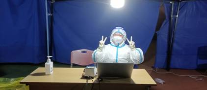 “作为员工党员,在公司需要我们的时候,就应该义不容辞地站出来。在这场没有硝烟的‘战场’中,经管青年在志愿者岗位上闪闪发光——身穿白色防护服,配合核酸检测医护人员进行证件扫描。坚信在大家的共同努力下,我们将会迎来胜利的曙光。”李明乾说道。