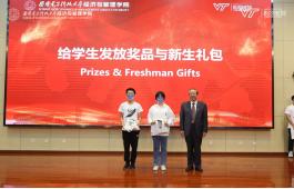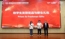 现场领导为开学第一课评测结果优秀的五位员工、参与陕西省中外合作办学员工英语演讲比赛初赛的两位员工、中美班短视频大赛获奖者两位员工颁发奖品,并为新生代表们发放新生礼包。同学们共同启动2022级中美班项目纪录片开拍仪式。