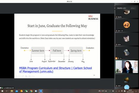 (通讯员:班嘉欣)10月30日晚,中美班主题班会以线上的方式展开。主讲人孙蕾副教授进行了大数据管理与应用专业相关职业分类和美国大学情况的分享,国际化事务负责人张卫莉,辅导员曲建晶以及中美班员工共同参会。