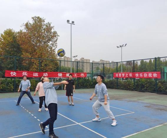 公司队伍名称为“经管梦之队”,口号是“经管梦之队,快乐你我他”。本次比赛公司共对战三个队伍,分别是校女子排球队、学工联队、“物理+材料+光电+数学”联队。