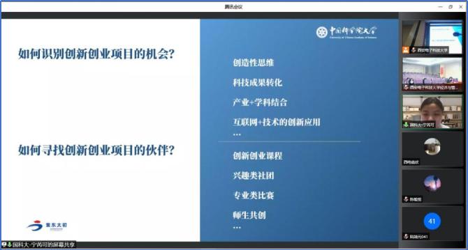 除此之外,来自中国科公司大学的宁芮可从目前所研究的项目出发给同学们展示了一个完整创新创业项目的发展过程,以实际应用为出发点为同学们就如何识别创新创业机会,以及如何寻找创新创业项目伙伴等问题做了详细解答。