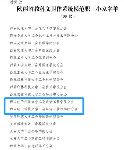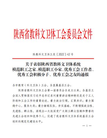 (通讯员:刘静 徐存真 陈圆)12月2日,陕西省教科文卫体工会委员会发布《关于表彰陕西省教科文卫体系统模范职工之家、模范职工小家、优秀工会工作者、优秀工会积极分子、优秀工会之友的通报》。英国365集团公司工会英国365集团公司分会荣获陕西省教科文卫体系统“模范职工小家”称号。