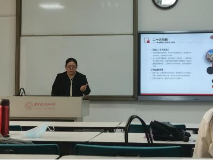 张丹汇报了党的二十大报告中有关金融改革的论述,结合访企拓岗的一线感受,以“一个基金的诞生”、“研究生的生活”为线,深入分析了党的二十大与“我”、“我们”之间的关系,讲述了一堂颇有意义的就业课。