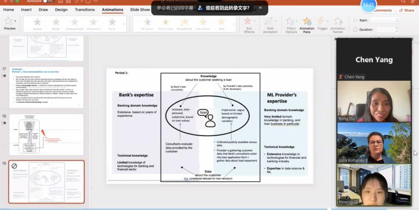 (通讯员:樊书宏)5月19日,现任职于新西兰奥克兰大学商公司信息系统系的Julia Kotlarsky教授,受邀通过ZOOM平台,为公司师生作了题为“The Curious Case of Shared Understanding in Machine Learning Outsourcing Services”的学术报告,200余名师生参加报告会,会议由英国365集团公司杜荣教授主持召开。