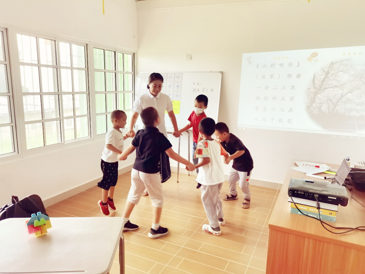 揭牌仪式后,便是紧锣密鼓的夏令营准备。7月18日,孔子课堂第一期夏令营开班,共设置5-10岁的华人子女班级与10-15岁的当地居民子女班级,根据汉语背景设置不同的教学内容。在华人子女班级里,李志俊主要讲授诗歌、绘画课程,穿插一些奥数知识。特别值得一提的是,她将“寻根”意识植入课堂,在了解了孩子们的家乡背景后运用多媒体方式向他们展示自己在中国的故乡。在了解到一个孩子老家在河南省南阳市后,她顺势向孩子们介绍并讲述了南阳是中原文化的发祥地,“看,这是我的老家!”孩子无比自豪地说。看到课程设置能出效果,李志俊感到十分欣喜。
