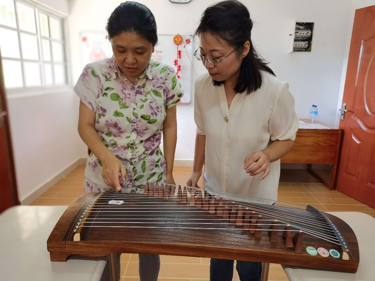 在当地孩子的课堂里,李志俊除了上好识字、读音等核心课程,还结合他们喜爱音乐的天性特点,将自己的古筝弹奏技能融入课堂,在课上展示中国传统古乐的音韵美。此外,李志俊还向他们讲授了中国象棋中“马走日,象走田”的规则,以及规则背后代表的社会角色意识。