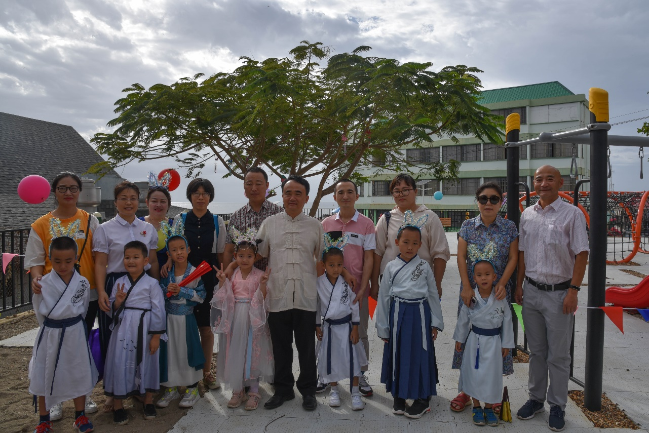 有梦不觉天涯远,李志俊积极参加各类友好活动。2023年驻多使馆举办的春节团拜会上,她作为特邀嘉宾独奏古筝,展示了中国古典乐的独特魅力,这些独出心裁的节目设置为中华文化收获了如潮掌声。2023 年复活节当天举办的中国政府援建的首都儿童游乐场剪彩仪式上,李志俊组织孔子课堂的小朋友身着中华传统服饰上演了一场“汉服秀”,弘扬中华优秀传统文化,赢得现场一致好评。仪式后,李志俊为总理夫妇的孩子赠送并现场为孩子们穿上了汉服,孩子们十分喜欢,林大使也对她竖起了大拇指。