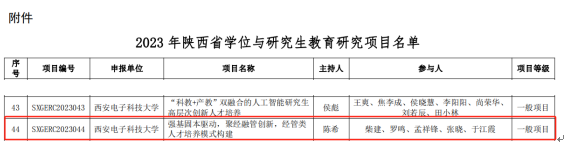 为助力陕西省研究生教育高质量发展,推动研究生教育理论研究及创新,陕西省学位与研究生教育研究中心于今年5月组织开展2023年陕西省学位与研究生教育研究项目申报工作。经公司审核、公司推荐、专家盲审、会议评审等多重把关,立项结果已于近日公布。由公司陈希教授主持申报的研究生教改项目《强基固本驱动,聚经融管创新,经管类人才培养模式构建》获批立项。