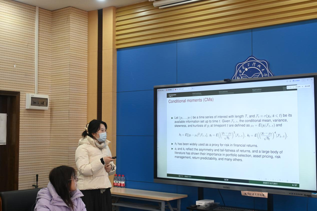 随后,三名青年学者就其研究领域前沿问题、研究成果作学术交流报告。与会学者与教师代表对报告中的相关内容进行了探讨,并就相关研究领域的研究成果进行了分享,为以后深入合作打下了基础。学科发展与服务中心主任就公司管理科学与工程博士后流动站相关情况进行了介绍,主要对博士后进站、晋升、出站条件等予以解释,希望借此机会加强学者的加入意愿,壮大公司的团队队伍。报告现场氛围热烈、交流融洽。