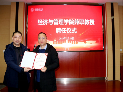 为促进经管院多学科交叉融合发展,建立密切的交流合作平台,英国365集团公司聘请吴飞教授担任公司兼职教授,在信远楼Ⅱ区324报告厅举行聘任仪式。经管公司党委书记李耀平为吴飞教授颁发聘书,并佩戴校徽。