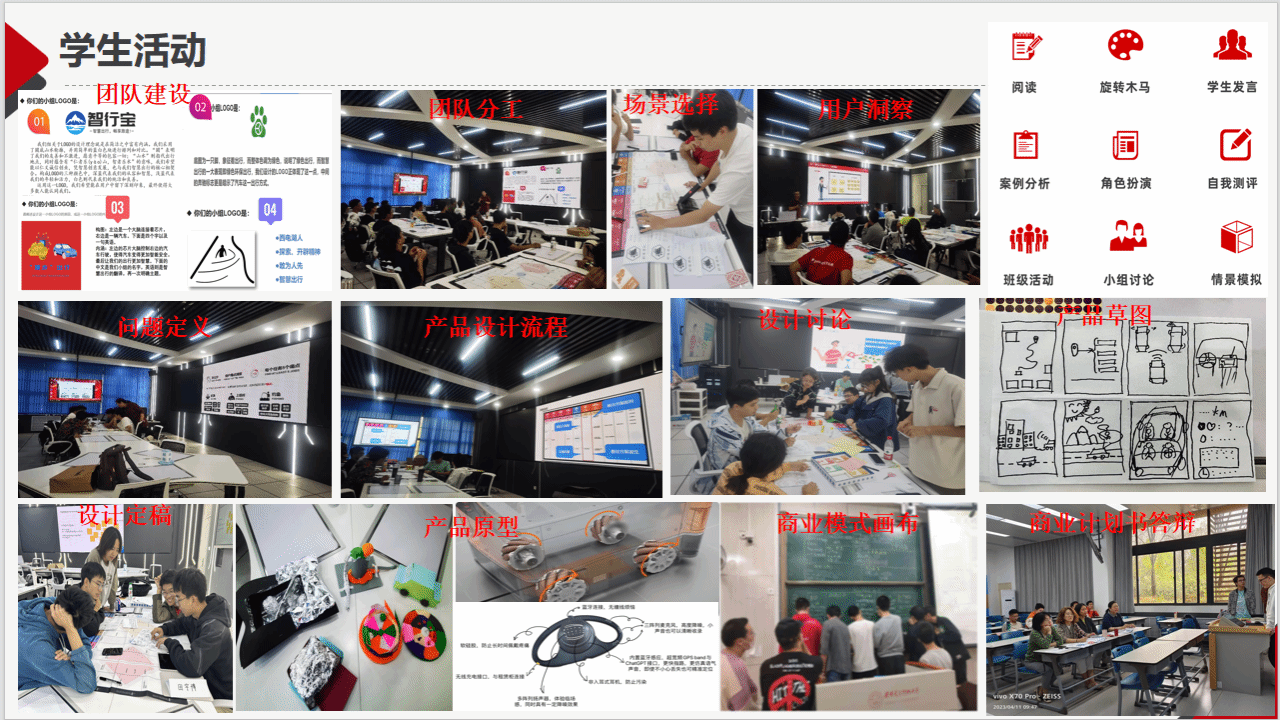 线下实训+实践:24学时(设计思维工坊+商业实训营)+8学时(市场调研+商业计划书撰写+商演)