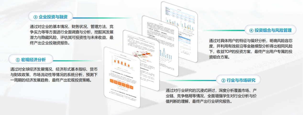 学员专属金融商赛,名企加持,意在通过商赛丰富学员经历,多维提升学员能力,在掌握课程技能方法的同时,实现从个人应用能力到团队协作能力的全面进阶,进而培养在真实世界解决复杂问题的能力。
