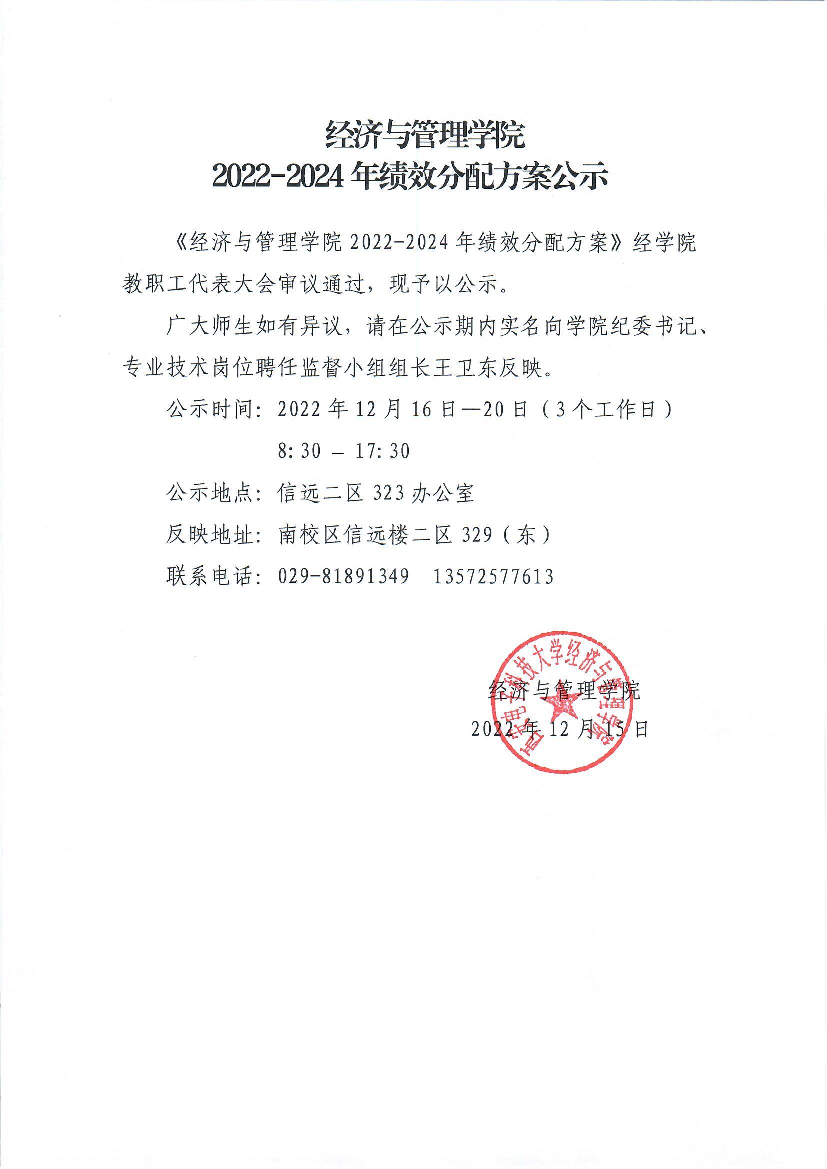 2022-2024年绩效分配方案公示