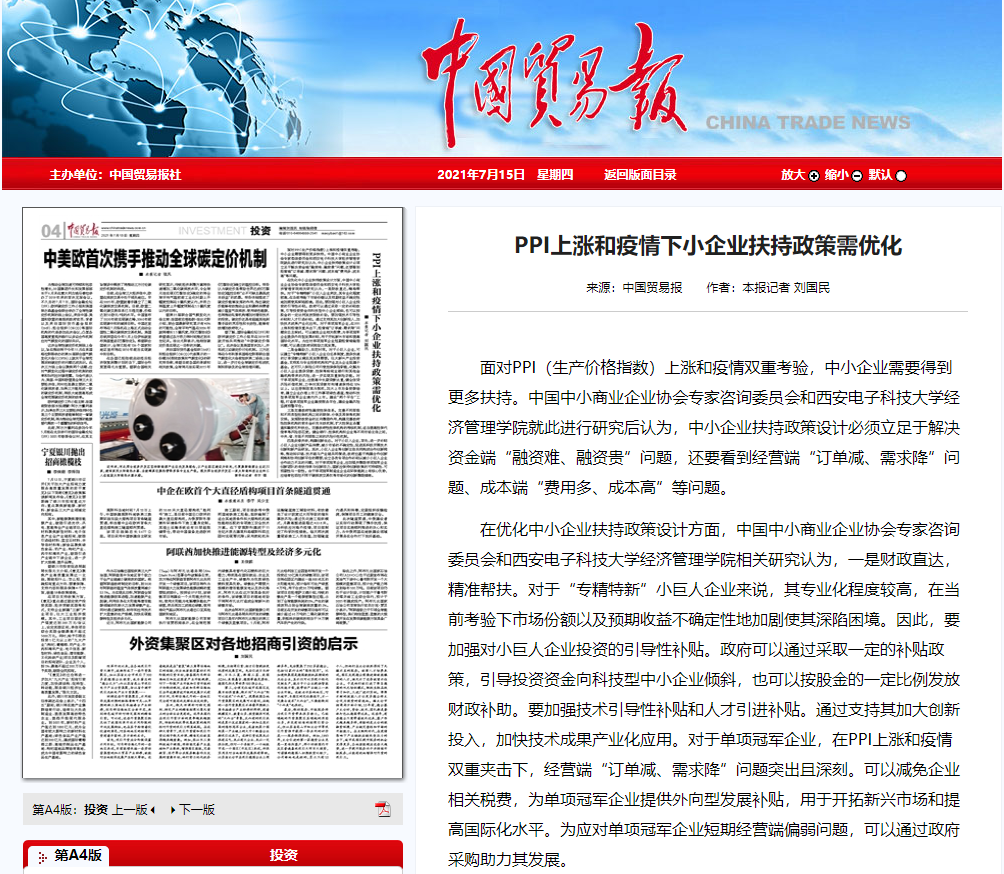 面对PPI(生产价格指数)上涨和疫情双重考验,中小企业需要得到更多扶持。中国中小商业企业协会专家咨询委员会和英国365集团公司经济管理公司就此进行研究后认为,中小企业扶持政策设计必须立足于解决资金端“融资难、融资贵”问题,还要看到经营端“订单减、需求降”问题、成本端“费用多、成本高”等问题。