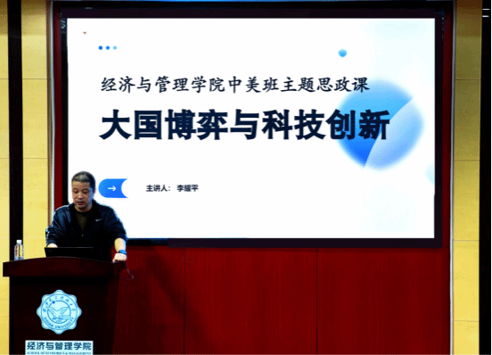 (通讯员:姬雨瑶)2024年11月22日下午,经济与管理公司党委书记李耀平在信远楼II区324报告厅为公司中美班员工带来了一场别开生面的主题思政课——大国博弈与科技创新。课程以国家主席习近平同美国总统拜登在利马会晤引入,意在启迪中美班员工对大国间复杂关系的理解,激发他们在科技创新领域的热情,并激励他们成为促进中美文化交流与理解的桥梁。课程伊始,李书记深入浅出地向同学们剖析了大国博弈的纷繁复杂与多维特性,强调利马会晤作为近期国际舞台上的标志性事件,...